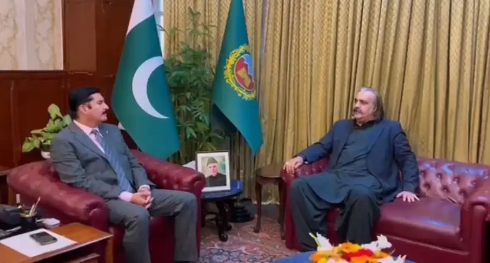 پشاور (اردو ٹائمز)(آئی پی ایس )گورنر اور وزیرِ اعلی خیبر پختونخوا کے درمیان خوش گوارملاقات ہوئی ہے۔ گورنر کے پی فیصل کنڈی کے سخت سوالات پر وزیرِ اعلی علی امین گنڈا پور مسکراتے رہے۔گورنر اور وزیرِ اعلی کے پی کے مابین ملاقات پشاور کے گورنر ہاوس میں قائم مقام چیف جسٹس کی تقریبِ حلف برداری سے پہلے ہوئی ہے۔وزیرِ اعلی علی امین گنڈاپور اور گورنر فیصل کریم کنڈی کی ملاقات 10 منٹ تک جاری رہی، دونوں خوش گوار موڈ میں دکھائی دیئے۔
