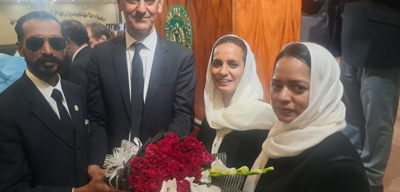 Rawalpindi (Urdu Times) The newly elected President of the High Court Bar Association Rawalpindi, Ahsan Hameedullah, presents a bouquet of flowers to Ms. Tahira Bano Mubarak, Member Executive from Rawalpindi Division, during the ceremony. Lawyers Ms. Uzma Mubarak and Azmat Ali Mubarak are also present.