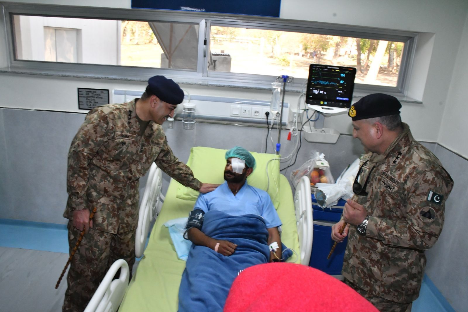 The Pakistan Army Chief praised the high morale and determination of the injured personnel.