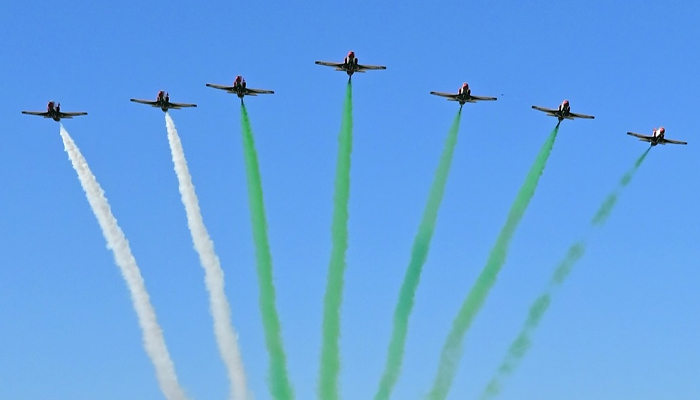اسلام آباد (اردو ٹائمز):یوم پاکستان کی پریڈ کے موقع پر پاک فضائیہ کے لڑاکا طیاروں نے شاندار فلائی پاسٹ کا مظاہرہ بھی کیا۔