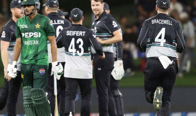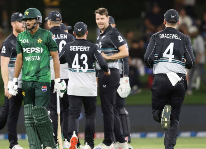 ISLAMABAD (Urdu Times) New Zealand defeated Pakistan by 115 runs in the fourth T20 International to clinch the series. Chasing a target of 221 runs, the Pakistani team was bundled out for 105 runs, with 9 Pakistani players unable to enter double figures. In the match played at Mount Manga Nui, Pakistan won the toss and decided to field. The host team scored 220 runs for the loss of 6 wickets in the stipulated 20 overs. In response, the Pakistani batting line proved to be a wall of sand. Muhammad Haris 2, Hassan Nawaz, Salman Ali Agha and Shadab Khan returned to the pavilion after scoring one run each, Irfan Khan lost courage after scoring 24 runs, Khushdil Shah could only score 6 runs while Abbas Afridi was also out after scoring one run. Abdul Samad stood out for Pakistan by scoring 44 runs while Shaheen Shah Afridi and Haris Rauf scored 6 runs each. For New Zealand, Jacob Duffy took 4, Zachary Foulkes took 3, while Will O’Rourke, Ish Sodhi and James Neesham took one wicket each. Earlier, in the first innings, the New Zealand batsmen showed an aggressive game from the very beginning and gave their team a good start of 59 runs.