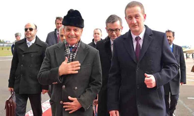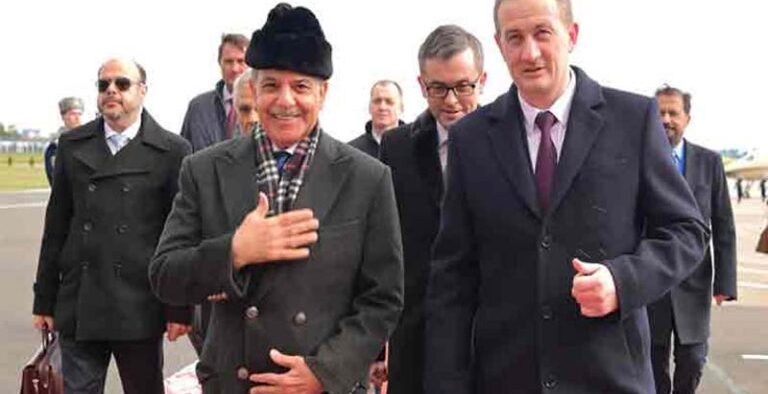 تفصیلات کے مطابق وزیراعظم شہباز شریف 2 روزہ دورے پر بیلاروس پہنچ چکے ہیں، منسک کے بین الاقوامی ہوائی اڈے پر بیلاروس کے وزیراعظم الیگزینڈر تورچن اور بیلارس میں پاکستانی سفارت خانے کے افسران نے وزیراعظم کا استقبال کیا جبکہ بیلاروس میں پاکستانی سفارتخانے کے حکام بھی وزیراعظم کے استقبال کیلئے ایئرپورٹ پر موجود تھے۔وزیراعظم کے بھائی نواز شریف، وزیراعلی پنجاب مریم نواز، نائب وزیراعظم اور وزیر خارجہ اسحاق ڈار، وفاقی وزیر اطلاعات و نشریات عطا اللہ تارڑ اور معاون خصوصی طارق فاطمی بھی وزیر اعظم کے ہمراہ ہیں۔