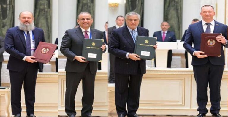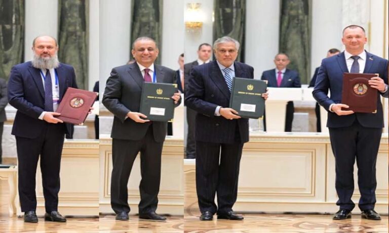 جمعہ کو وزیراعظم کے دورہ بیلاروس کے موقع پر دونوں ملکوں کے درمیان معاہدوں اور مفاہمت کی یادداشتوں کے تبادلے کی تقریب منعقد ہوئی، اس موقع پرپاکستان کی وزارت دفاع اور بیلا روس کی وزارت دفاع کے درمیان فوجی تعاون کا معاہدہ ہوا۔تقریب میں بیلاروس کی فوجی صنعت کی اسٹیٹ اتھارٹی اوروزارت دفاعی پیداوارپاکستان کے درمیان فوجی تکنیکی تعاون سے متعلق 2025 سے 2027کا روڈ میپ طے پاگیا، دونوں ممالک کے درمیان ری ایڈمیشن معاہدہ کا معاہدہ بھی طے پایا ہے۔سرکاری خبررساں ایجنسی کی رپورٹ کے مطابق پاکستان سے ڈیڑھ لاکھ سے زائد تربیت یافتہ اور ہنر مند نوجوانوں کو بیلا روس بھیجا جائے گا، یہ فیصلہ وزیراعظم محمد شہباز شریف اور بیلاروس کے صدر لوکو شینکا کے مابین جمعہ کو بیلا روس کے ایوان آزادی میں ہونے والی دو طرفہ ملاقات میں کیا گیا۔