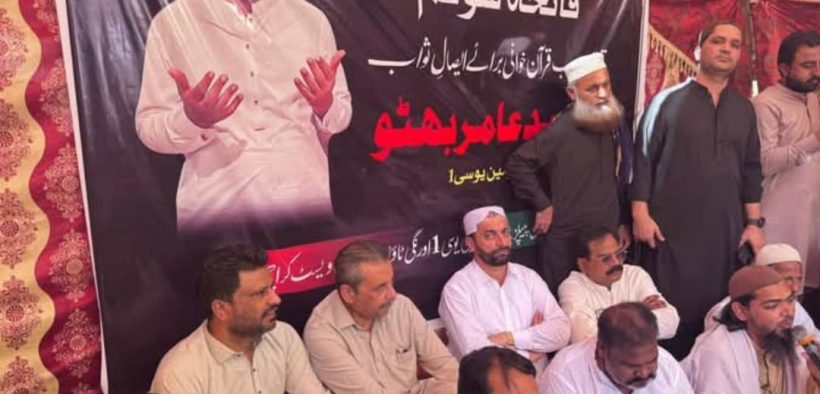 کراچی (اردو ٹائمز) چیئرمین منگھوپیر حاجی نواز علی بروہی کی شہید عامر بھٹو کی سوئم میں شرکت، والد سے اظہارِ تعزیت