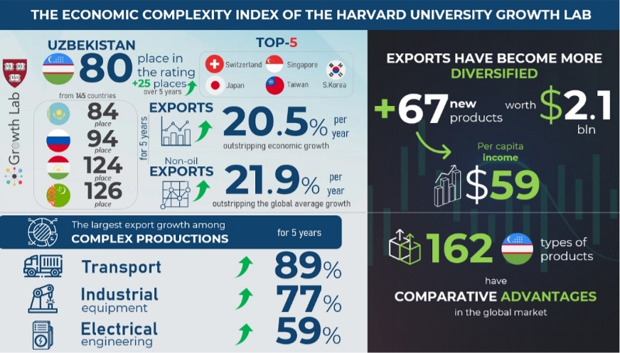 TASHKENT, Wednesday, April 23, 2025 (Urdu Times): Uzbekistan has recorded remarkable economic progress, rising 25 positions over the past five years to rank 80th among 145 countries in the latest Economic Complexity Index (ECI) published by the Growth Lab at Harvard University.