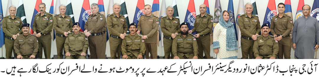 آئی جی پنجاب کی انسپکٹر کے عہدے پر ترقی پانے والے افسران کو مبارکباد، مستقبل کے لیے نیک خواہشات کا اظہار،پاکستانیوں کی بے لوث خدمت اور پاکستان کی بے خوف حفاظت کریں، آئی جی پنجاب ڈاکٹر عثمان انور