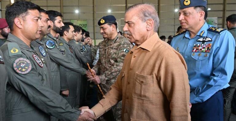 وزیر اعظم نے کہا کہ 6 سے 10 مئی تک دنیا کو پاک فضائیہ نے اپنی اعلی ترین مہارت سے حیرت میں ڈالا، پاکستان کی تاریخ میں اس سے زیادہ شاندار فتح ہمیں پہلے نصیب نہیں ہوئی تھی۔شہباز شریف کا کہنا تھا کہ پاکستان کی کامیابی نے خطے میں طاقت کے توازن کو تبدیل کیا، دشمن کو پیغام مل گیا کہ اگر دوبارہ ہماری طرف میلی آنکھ سے دیکھا تو پاں تلے روند دیں گے۔وزیر اعظم نے مزید کہا کہ ہمارے جوانوں نے دنیا کی سوچ بدل کر رکھی دی، 10 مئی کو دنیا میں ایک ہی آواز اٹھی کہ جنگ پاکستان نے تکنیکی مہارت سے جیتی۔