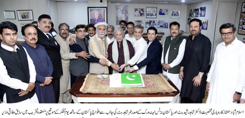 Islamabad (Urdu Times): A special ceremony was organized at the secretariat of Dr. Shahid Rasheed Butt, former President of Islamabad Chamber of Commerce, and Omar Shahid Butt, President Pakistan Business Network, to pay rich tribute to the Pakistan Armed Forces for their historic victory in the recent battle for justice.