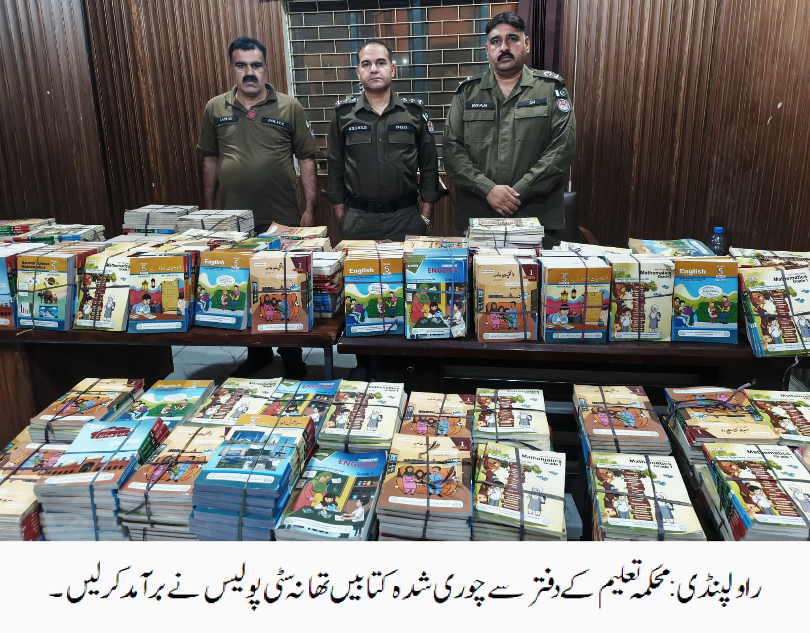 راولپنڈی (اردو ٹائمز) تھانہ سٹی پولیس ٹیم کی اہم کارروائی، محکمہ تعلیم کے دفتر سے 9600 سے زائد کتابیں چوری کرنے والے دو افراد گرفتار