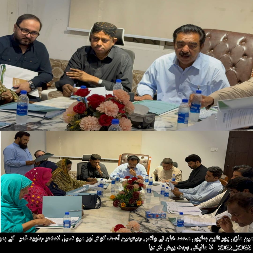 KARACHI (Urdu Times) Karachi Chairman of Mauripur Town, Humayun Muhammad Khan, along with Vice Chairman Asif Kausar and Municipal Commissioner Javed Qamar, presented the Annual Budget for the fiscal year 2025-26, estimating a total outlay of approximately Rs. 1.99 billion. The budget was approved by majority vote in an official session held at the Mauripur Town Council Hall on June 25. The meeting was attended by council members, officers, and other stakeholders and began with the recitation of the Holy Quran. According to the budget details, 66.44% of the funds are allocated to non-development expenditures and 33.46% to development projects. The opening balance stands at Rs. 451,270, with an OZT share from the Government of Sindh amounting to Rs. 1.67 billion, property tax estimated at Rs. 60 million, self-generated income at Rs. 64 million, and a projected grant of Rs. 200 million from the provincial government, bringing the total revenue to Rs. 1.99 billion. Non-development expenses include Rs. 1.23 billion for salaries, Rs. 350 million for other expenditures, and Rs. 120 million for maintenance and repair, while development expenditures are estimated at Rs. 857 million. Total projected expenses stand at Rs. 2.56 billion, with a calculated deficit of Rs. 567 million. Addressing the council, Chairman Humayun Muhammad Khan stated that the budget is based on public welfare, infrastructure enhancement, sanitation, beautification, and employee welfare. Despite limited resources, a comprehensive and people-friendly budget has been formulated through consultation with all council members, aiming to set a positive precedent for the town’s development and prosperity in the days ahead.