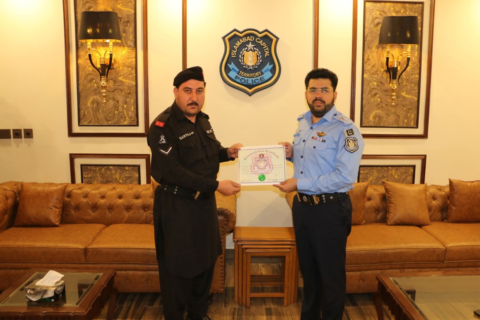 اسلام آباد (اردو ٹائمز) ایس ایس پی سکیورٹی محمد سرفراز ورک نے ایف سی کے افسران سرتاج حسین اور واجد علی کو تفویض کردہ فرائض منصبی کو احسن طریقے سے سر انجام دینے پر شاباش دی اور تعریفی سرٹیفکیٹ سے نوازا۔