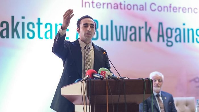 ’’دنیا کیلئے پاکستان کی دہشت گردی کیخلاف جنگ‘‘ کے عنوان پر عالمی کانفرنس سے خطاب کرتے ہوئے سابق وزیر خارجہ بلاول بھٹو زرداری کا کہنا تھا کہ دہشت گردی ایک عالمی مسئلہ ہے، پاکستان نے دہشت گردی کیخلاف سب سے زیادہ قربانیاں دیں اور دہشت گردی کیخلاف جنگ میں بھاری جانی و مالی نقصان اٹھایا۔