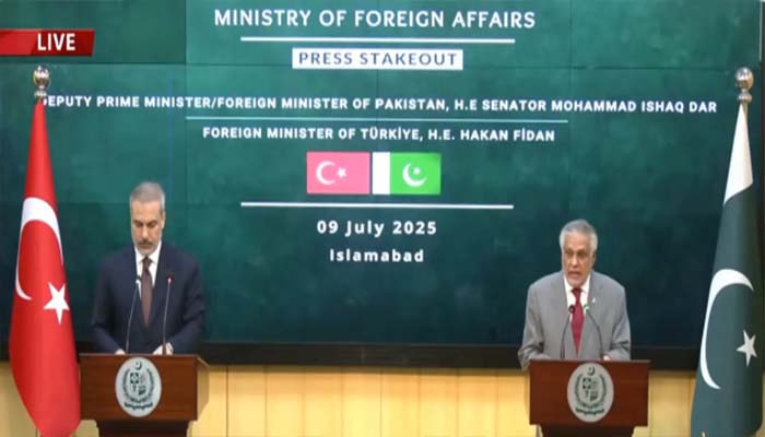 حکان فدان نے کہا کہ دونوں ملکوں نے اقتصادی امور، ثقافت اور دفاع کے شعبوں میں تعاون کو فروغ دیا، دونوں ممالک باہمی تجارت کو 5 ارب ڈالر تک بڑھانے کے خواہاں ہیں، پاکستان اور ترکیہ کے درمیان آئل اور گیس میں تعاون کو فروغ دے رہے ہیں۔انہوں نے کہا کہ خیبرپختونخوا میں دہشت گرد حملے کی مذمت کرتے ہیں، قبرص کے معاملے پر پاکستان کی حمایت ہمارے لئے انتہائی اہم ہے۔ترک وزیر خارجہ کا کہنا تھا کہ پاک بھارت کشیدگی کے دوران پاکستان نے ضبط وتحمل اور دانشمندی کا مظاہرہ کیا، اسرائیلی جارحیت نے پورے خطے کو خطرے میں ڈالا۔