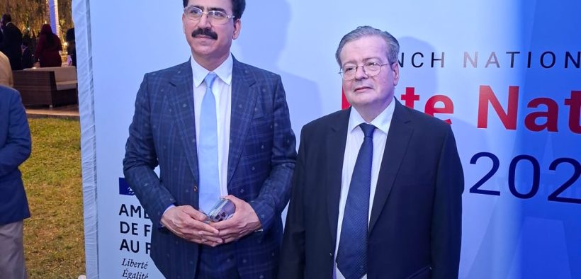 ISLAMABAD (Urdu Times) Group photo of Chairman Pakistan Business Forum Europe Sardar Zahoor Iqbal with French Ambassador Nicolas Gaille on the occasion of France’s National Day