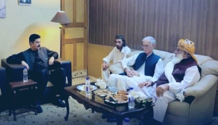 Khyber Pakhtunkhwa (Urdu Times) I have been in Khyber Pakhtunkhwa for the past few days. During this time, I attended the Grand Tribal Jirga organized by Maulana Fazlur Rehman’s Jamiat Ulema-e-Islam (JUI-F) in Peshawar and also visited the Governor House and spoke to him about the political changes in KPK. In which the possibility of political change is being expressed. Echoing the big change in Khyber Pakhtunkhwa politics, the important consultation of the opposition parties of the province has entered its final stage. An informal meeting was held between Khyber Pakhtunkhwa Governor Faisal Karim Kundi, Federal Minister Amir Muqam, Advisor to the Prime Minister Pervez Khattak and JUI chief Maulana Fazlur Rehman. The meeting took place at Pervez Khattak’s residence after condoling the death of his sister, in which detailed discussions were held on the provincial political situation, issues of merged districts and the law and order situation.