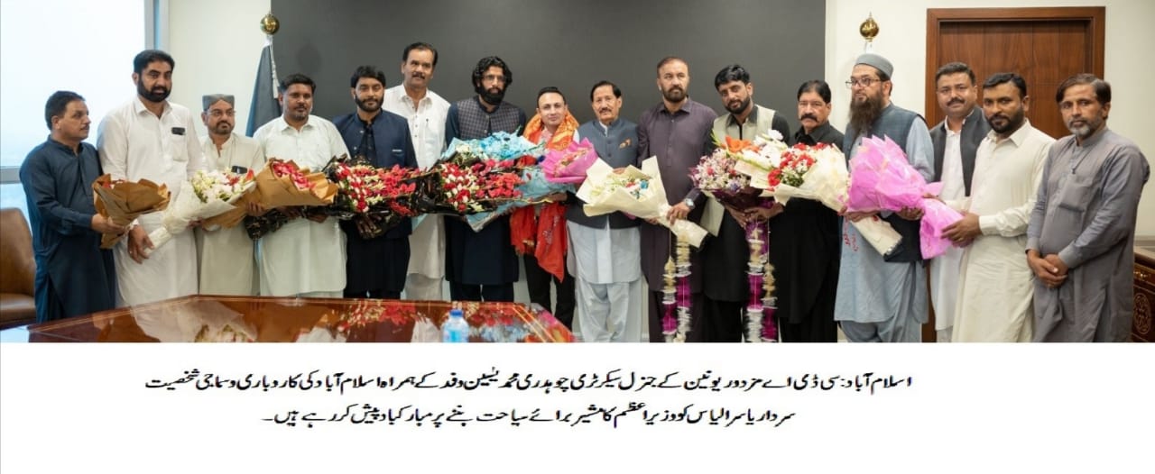 اسلام آباد (اردو ٹائمز) سی ڈی اے مزدور یونین کے جنرل سیکرٹری چوہدری محمد یٰسین، پاکستان ورکرز فیڈریشن کے جنرل سیکرٹری اسد محمود، مزدور یونین کے سپریم ہیڈ مرزا سعید اختر، چیف آرگنائزر ملک محمد عاصم، سینئر رہنما اظہر خان تنولی، اظہار عباسی، ایڈیشنل جنرل سیکرٹری ملک محمد سرفراز، چیف کورآرڈینیٹر چوہدری واجد گجر، سینئر نائب صدر چوہدری ابرار، ڈپٹی جنرل سیکرٹری صفدر عباسی نے سوشل میڈیا ٹیم کے ہمراہ اسلام آباد کی کاروباری و سماجی شخصیت سردار یاسر الیاس کو وزیر اعظم کامشیر برائے سیاحت بننے پر مبارکباد پیش کی۔اس موقع پر قائد مزدور چودھری محمد یٰسین نے سردار یاسر الیاس کی اسلام آباد شہر کے لیے خدمات کو خراج تحسین پیش کرتے ہوئے کہا کہ یہ ہمارے لیے اعزاز کی بات ہے کہ سردار یاسر الیاس کو مشیر برائے سیاحت کا قلمدان دیا گیا ہے اور ہم امید کرتے ہیں کہ سیاحت کے فروغ اور دارالحکومت کو مزید خوبصورت بنانے کے لیے وہ اہم کردار ادا کریں گے اس سلسلے میں سی ڈی اے مزدور یونین ان کے ساتھ مکمل تعاون کا یقین دلاتی ہے۔اس موقع پروزیر اعظم کے مشیر برائے سیاحت سردار یاسر الیاس نے وفد کا شکریہ ادا کرتے ہوئے کہا کہ مزدور اس ملک کی معیشت میں ریڑھ کی ہڈی کی حیثیت رکھتا ہے اس لیے مزدوروں کی خوشحالی کے لیے ہم مل کر چلیں گے۔ اسلام آباد میں باہمی مشاورت سے سیاحت کو فروغ دینے لیے مختلف فیسٹیول اور پروگرام کا انعقاد کیا جائے گا تا کہ ملک میں سیاحت کرو فروغ مل سکے اور پاکستان بین الاقوامی سیاحوں کے لیے توجہ کا مرکز بنے۔
