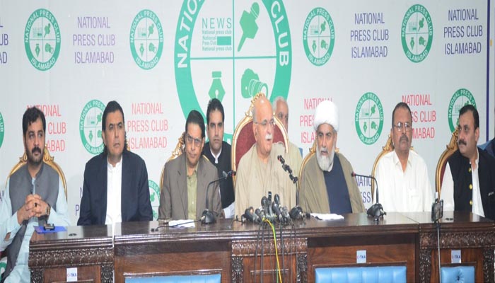اسلام آباد (اردو ٹائمز) تحریکِ تحفظِ آئینِ پاکستان کے عہدیداران کا اعلان کر دیا گیا،تحریکِ تحفظِ آئینِ پاکستان کے چیئرمین محمود اچکزئی، علامہ راجہ ناصر عباس، مصطفی نواز کھوکھر اور اختر مینگل وائس چیئرمین اسد قیصر سیکریٹری جنرل، صاحبزادہ حامد رضا سیکریٹری اطلاعات، اخونزادہ حسین یوسف زئی ترجمان ہوں گے،یہ تحریک آئین کی بالادستی، عدلیہ و جمہوریت کے تحفظ کی جدوجہد کرے گی،اس بات کا اعلان محمود خان اچکزئی ،سلمان اکرم راجہ،علامہ راجہ ناصر عباس جعفری،مصطفی نواز کھوکھر و دیگر نے نیشنل پریس کلب اسلام آباد میں پریس کانفرنس کرتیہوئے کیا،محمود خان اچکزئی کا کہنا تھا کہ آج ایک عام انسان ایک وقت کی روٹی کے لیے ترس رہا ہے,47 فیصد لوگ غربت کی لکیر سے نیچے چلے گئے ہیں،تاجر اور کسان رل گئے ہیںعدلیہ کو مفلوج کردیا گیا ہے