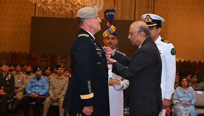 اسلام آباد (اردو ٹائمز) امریکی سینٹکام کے کمانڈر جنرل مائیکل کوریلا کو نشانِ امتیاز ملٹری اعزاز سے نواز دیا گیا