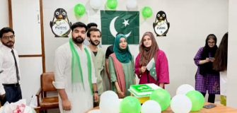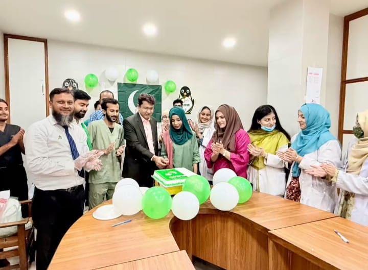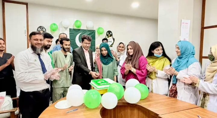 KARACHI (Urdu Times) Karachi A vibrant Independence Day ceremony was held today at the Plastic Surgery Ward 24 of Jinnah Postgraduate Medical Center (JPMC) Karachi; where doctors, nursing staff and other staff of the ward participated in the ceremony. Pakistan’s Independence Day was celebrated with great enthusiasm and enthusiasm with green and white balloons, national flags and attractive decorations. A cake was also cut on the occasion and prayers were offered for the prosperity and development of the dear homeland.