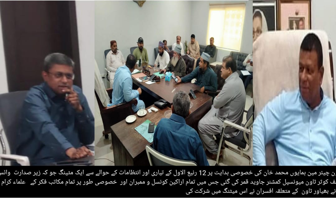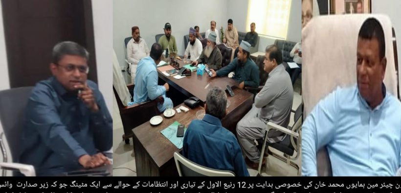 KARACHI (Urdu Times) Karachi On the special directives of Mauripur Town Chairman Humayun Muhammad Khan, an important meeting was held to finalize preparations for the holy month of Rabi-ul-Awwal. The meeting was chaired by Vice Chairman Asif Kausar and Town Municipal Commissioner Javed Qamar, with participation from council members, scholars of various schools of thought, organizers, and officials from relevant departments.