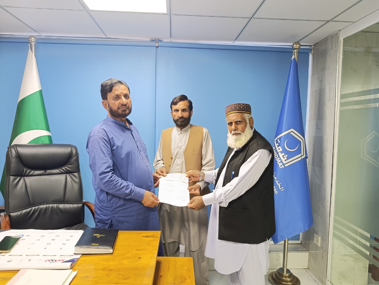 گزشتہ روز اورنگزیب تنولی سیکرٹری جنرل، آل پاکستان ریلویز پنشنرز ایسوسی ایشن اور محبوب الٰہی اعوان آفس سیکرٹری نے الخدمت فاؤنڈیشن اسلام آباد کے صدر الطاف شیر سے ان کے آفس میں ملاقات کی ،اور ان کی خدمات کو سراہا ۔اس موقع پر انھیں ریلوے کے یتیم بچوں، بیواؤں، اور عمر رسیدہ و بیمار پنشنرز کی جانب سے خیبرپختونخوا کے سیلاب زدگان کے لیے 385,000 کا امدادی بینک ڈرافٹ پیش کیا گیا ، اس موقع پر اورنگزیب تنولی سیکرٹری جنرل، آل پاکستان ریلویز پنشنرز ایسوسی ایشن اور محبوب الٰہی اعوان آفس سیکرٹری نے کہا کہ سیلاب زدگان کی مشکلات میں ان کے ساتھ کھڑے ہیں۔ہماری دعائیں ہیں کہ پاکستان مزید سیلاب کی تباہ کاریوں سے محفوظ رہے ۔آمین۔اس پر الخدمت فاؤنڈیشن اسلام آباد کے صدر الطاف شیر نے شکریہ ادا کیا اور کہا کہ ہمیں خوشی ہے کہ آل پاکستان ریلویز پنشنرز ایسوسی ایشن نے نہایت مثبت قدم اٹھایا۔انسان ہونے اور ایک محب الوطن پاکستانی ہونے کے ناطے ہم سب کا فرض ہے کہ مشکل میں اپنے بہن بھائیوں کا ساتھ دیں۔آپ کی خدمات قابل تحسین ہیں۔
