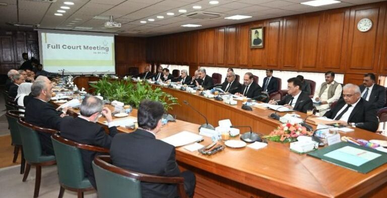 اسلام آباد (اردو ٹائمز) سپریم کورٹ کا انتظامی فل کورٹ اجلاس کا اعلامیہ جاری، اجلاس چیف جسٹس پاکستان یحییٰ آفریدی کی زیر صدارت ہوا، فل کورٹ اجلاس میں سپریم کورٹ کے ججز شریک ہوئے،اجلاس میں سپریم کورٹ رولز 2025 کا جائزہ لیا گیا