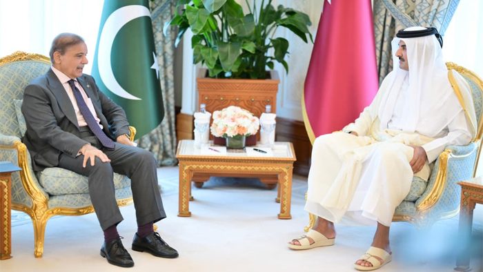 امیر قطر سے ملاقات میں وزیراعظم نے دوحہ میں رہائشی علاقے پر اسرائیلی حملے کی سختی سے مذمت کی ، جانی نقصان پر دکھ کا اظہار کیا، قطر کے گزشتہ ہفتہ کے دورے کا حوالہ بھی دیا۔