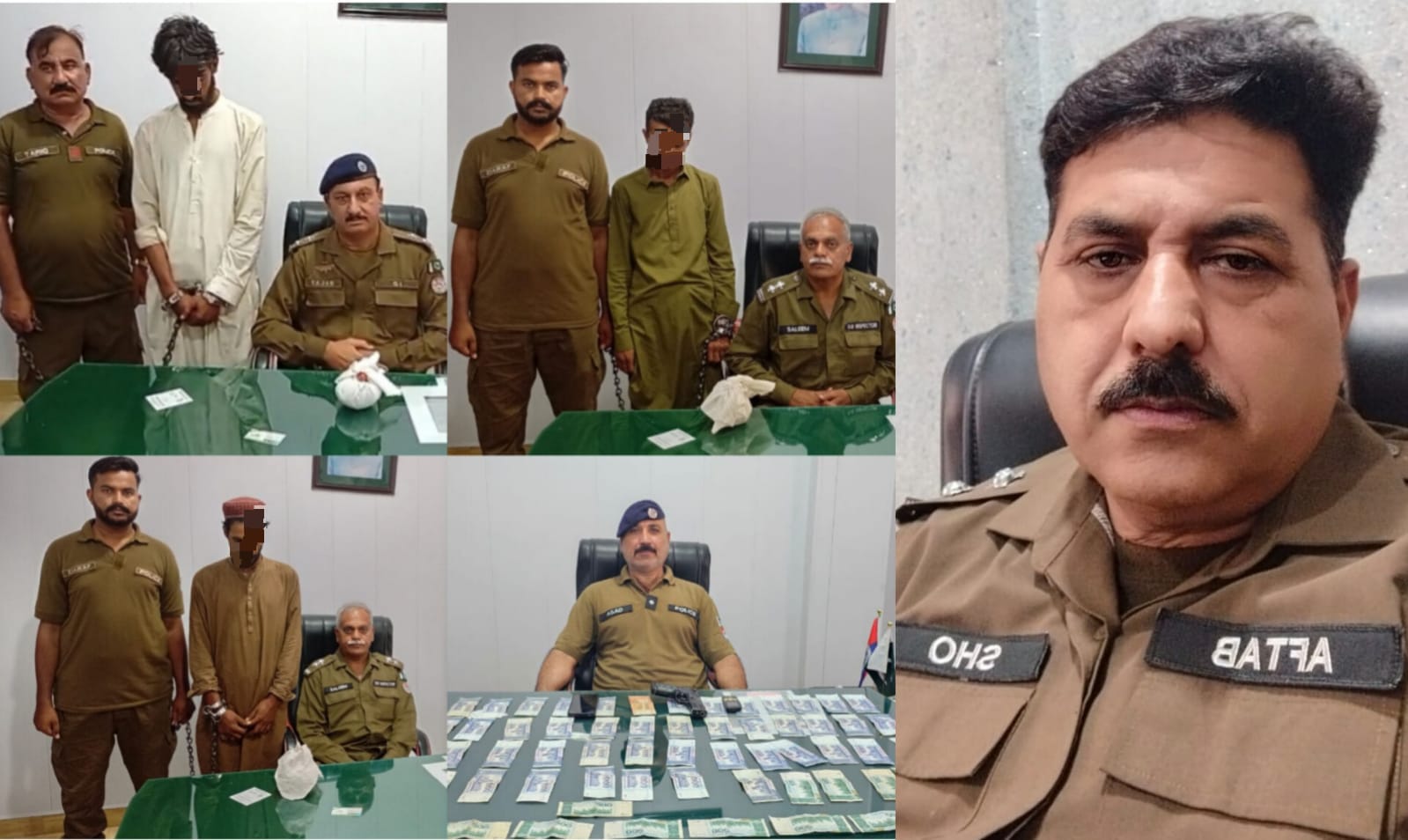 تفصیلات کے مطابق ایس پی پوٹھوہار طلحہ ولی کی زیرنگرانی ایس ایچ او صدرواہ نے ہمراہ پولیس ٹیم علاقے میں جرائم کو کنٹرول کرنے کے پیش نظر کاروائیاں جاری رکھتے ہوئے ڈکیت گینگ کے سرغنہ عمر فاروق سمیت 02 افراد کو گرفتار کرکے مسروقہ رقم 65 ہزار روپے، 02 موبائل فون اوراسلحہ برآمد جبکہ پولیس ٹیم نے مزید کاروائیاں عمل میں لاتے ہوئے علی حیدر کو گرفتار کے 1200 گرام ہیروئن برآمد کر لی دوسری کاروائی پولیس نے زبیر کو گرفتار کے کے 520 گرام آئس جبکہ تیسری کاروائی میں شہزاد نامی منشیات فروش کو گرفتار کر کے 1600 گرام چرس برآمد کر لی پولیس ٹیم کی کاروائیوں پر ایس پی پوٹھوہار نے ایس ایچ او صدرواہ سمیت پولیس ٹیم کو شاباش دیتے ہوئے کہا کہ جرائم پیشہ عناصر کیخلاف بلا تفریق کاروائیاں جاری رہیں گی