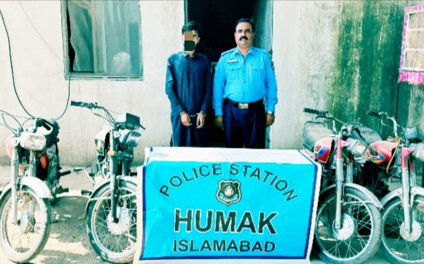 اسلام آباد (اردو ٹائمز) موٹرسائیکل چور گرفتار . اسلحہ 30 بور سمیت 04 مسروقہ موٹرسائیکل برآمد ۔ تفصیلات کے مطابق ایس پی سواں خرم اشرف کی خصوصی ھدایت پر تھانہ ہمک پولیس نے موٹر سائیکل چور ملزم محمد موسی سکنہ ضلع مردان حال ڈھوک کمیٹی چوک راولپنڈی کو گرفتار کرکے ملزم کے قبضہ سے دوران واردات استعمال ہونے والا اسلحہ پسٹل 30بور اور دوران واردات چوری شدہ 04عدد مسروقہ موٹرسائیکل برآمد مزید تفتیش کرنے پر مقدمہ نمبر 133/25بجرم 392ت پ مقدمہ نمبر841/25 اور 888/25 بجرم 381Aت پ تھانہ ہمک اور مقدمہ نمبر320/23 بجرم 381Aت پ تھانہ چونترہ راولپنڈی کا مسروقہ پایاگیا ہے ملزم سے مزید تفتیش جاری ہے