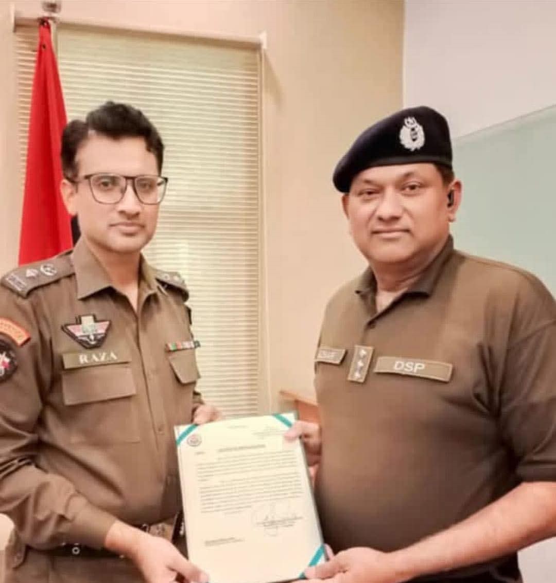 ایس ایس پی انوسٹیگیشن رضا تنویر سپرا نے ڈی ایس پی سٹی سید اظہر حسین شاہ کو بہترین کارکردگی پر افیسر اف دا منتھ کا لیٹر دیا