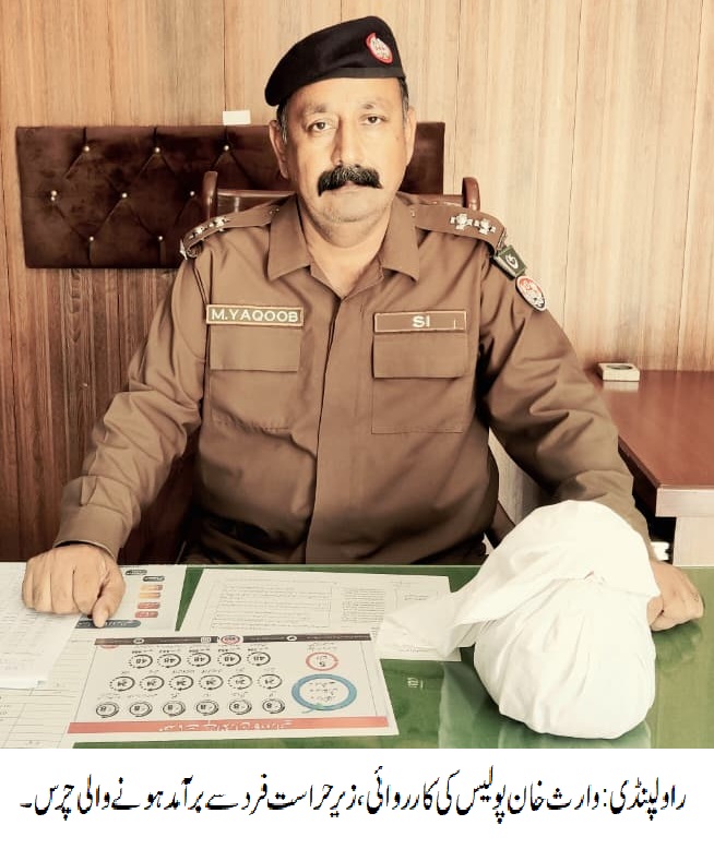 راولپنڈی (اردو ٹائمز) ایس ایچ او تھانہ وارث خان خضر حیات کی زیرنگرانی پولیس ٹیم کی کاروائی