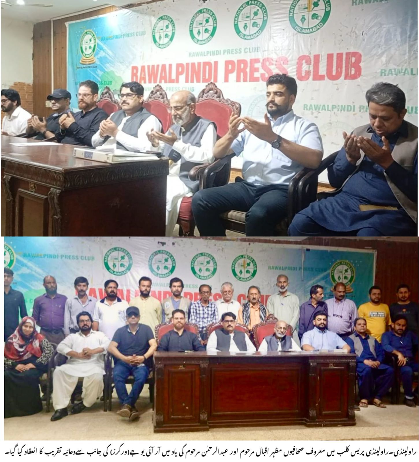 راولپنڈی (اردو ٹائمز) معروف صحافی مظہر اقبال مرحوم اور عبدالرحمٰن مرحوم کی یاد میں دعائیہ تقریب کا انعقاد کیا گیا