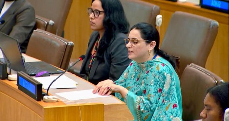 ، یہ سب بھارت کے غیر ذمہ دارانہ اور جنگجویانہ رویے کا مظہر ہے، بھارت خطے کو غیر مستحکم کرنے کے لیے جھوٹا پراپیگنڈا پھیلاتا ہے، دہشت گردی کی سرپرستی کرتا ہے، اور جنوبی ایشیا کے امن و استحکام کے لیے خطرہ بنا ہوا ہے۔اقوام متحدہ کے پاکستان کے مستقل مشن کی رکن نے کہا کہ جب خطہ ماحولیاتی تبدیلی کے باعث سیلابوں اور خشک سالی کا شکار ہے، ایسے میں بھارت کی جانب سے سندھ طاس معاہدے کو مخر کرنا نہ صرف بین الاقوامی ذمہ داریوں کی خلاف ورزی ہے، بلکہ انسانی وقار، پاکستانی عوام کے انسانی حقوق، اور اچھے ہمسائیگی کے بنیادی اصولوں کی توہین بھی ہے۔انہوں نے دنیا کو دو ٹوک بتایا کہ جنوبی ایشیا میں امن ایک خواب ہی رہے گا جب تک بھارت جموں و کشمیر پر اپنا قبضہ ختم نہیں کرتا اور جارحیت و ریاستی دہشت گردی کی پالیسی کو ترک نہیں کرتا، پاکستان امن، انصاف اور مظلوم کشمیری عوام کے حقوق کے لیے پرعزم کھڑا رہے گا۔