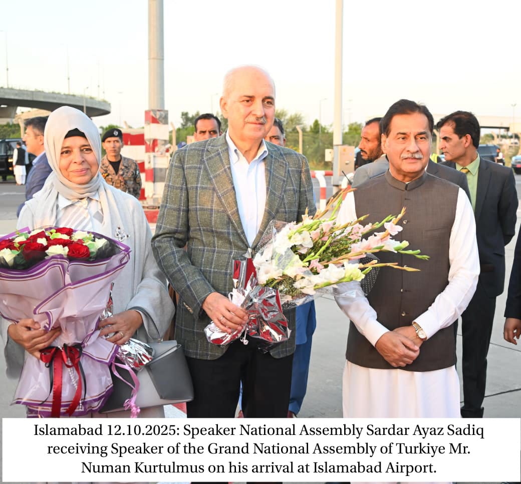 اسلام آباد (اردو ٹائمز) تیسرے سہ فریقی اسپیکرز اجلاس میں شرکت کے لیے ترکیہ کی گرینڈ نیشنل اسمبلی کے اسپیکر نعمان کورتولموش پاکستان پہنچ گئے۔ اسپیکر قومی اسمبلی سردار ایاز صادق نے اسلام آباد ایئرپورٹ پر معزز مہمان کا پرتپاک استقبال کیا۔ اسپیکر قومی اسمبلی نے اسپیکر ترکیہ گرینڈ نیشنل اسمبلی کو خوش آمدید کہا اور معزز مہمان پھولوں کا گلدستہ بھی پیش کیا۔