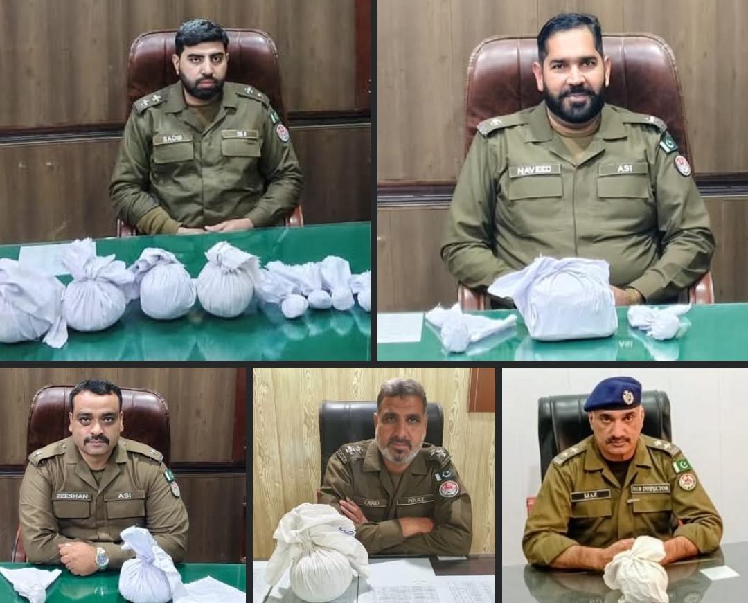 بڑے منشیات سپلائر سمیت پانچ افراد گرفتار، 4 کلو ہیروئن اور ساڑھے 6 کلو سے زائد چرس برآمد،