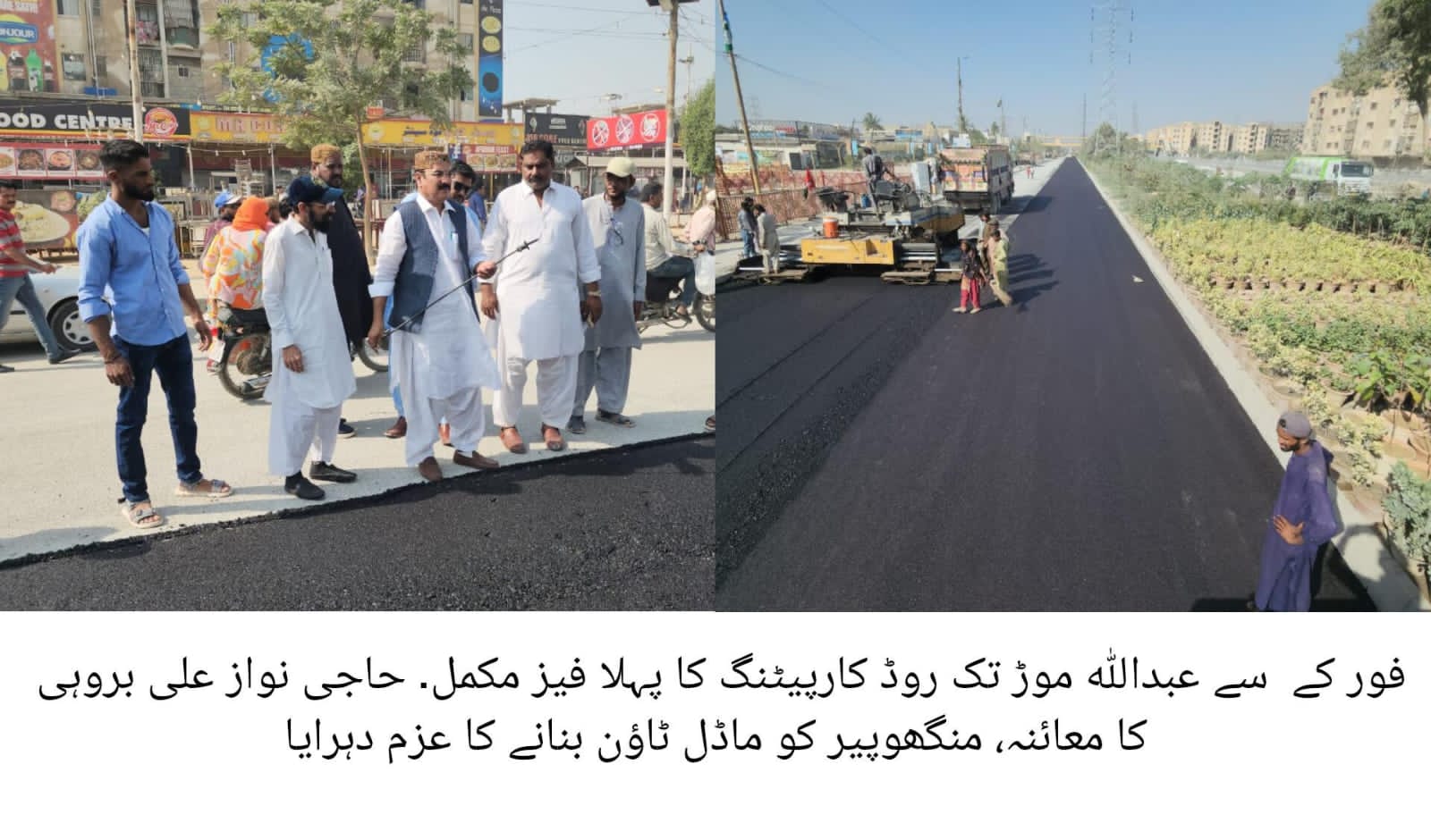کراچی (اردو ٹائمز) کراچی منگھوپیر ٹاؤن کے چیئرمین حاجی نواز علی بروہی نے آج فور کے سے عبداللہ موڑ تک جاری روڈ کارپٹنگ منصوبے کے پہلے فیز کی تکمیل کے بعد خود سڑک کا تفصیلی معائنہ کیا۔
