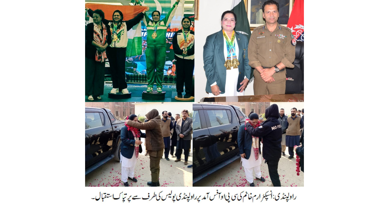 راولپنڈی (اردو ٹائمز) راولپنڈی پولیس انسپکٹر ارم خانم کا بین الاقوامی سطح پر اہم اعزاز، ورلڈ پاور لفٹنگ چمپیئن شپ 2025 سری لنکا میں دو گولڈ میڈل اپنے نام کر لیے، راولپنڈی پولیس کی انسپکٹر ارم خانم نے راولپنڈی پولیس، پنجاب پولیس اور پاکستان کا نام روشن کیا، انسپکٹر ارم خانم نے پاور لفٹنگ میں اوّل پوزیشن حاصل کر کے گولڈ میڈل حاصل کیا، انسپکٹر ارم خانم نے ڈیڈ لفٹ کے مقابلوں میں بھی اوّل پوزیشن حاصل کر کے گولڈ میڈل حاصل کیا، انسپکٹر ارم خانم نے بھارتی پاور لفٹر کو شکست دے کر اوّل پوزیشن حاصل کی، انسپکٹر ارم خانم کی سی پی او آفس آمد پر راولپنڈی پولیس کی طرف سے پرتپاک استقبال، انسپکٹر ارم خانم کی نمایاں کامیابی نہ صرف محکمہ پولیس بلکہ پوری قوم کے لیے باعثِ فخر ہے۔ سی پی او سید خالد ہمدانی۔ تفصیلات کے مطابق راولپنڈی پولیس کی انسپکٹر ارم خانم کا بین الاقوامی سطح پر اہم اعزاز، ورلڈ پاور لفٹنگ چمپیئن شپ 2025 سری لنکا میں دو گولڈ میڈل اپنے نام کر لیے، راولپنڈی پولیس کی انسپکٹر ارم خانم نے راولپنڈی پولیس، پنجاب پولیس اور پاکستان کا نام روشن کیا، انسپکٹر ارم خانم نے پاور لفٹنگ میں اوّل پوزیشن حاصل کر کے گولڈ میڈل حاصل کیا، انسپکٹر ارم خانم نے ڈیڈ لفٹ کے مقابلوں میں بھی اوّل پوزیشن حاصل کر کے گولڈ میڈل حاصل کیا، انسپکٹر ارم خانم نے بھارتی پاور لفٹر کو شکست دے کر اوّل پوزیشن حاصل کی، انسپکٹر ارم خانم کی سی پی او آفس آمد پر راولپنڈی پولیس کی طرف سے پرتپاک استقبال کیا گیا، سی پی او سید خالد ہمدانی نے انسپکٹر ارم خانم کی حوصلہ افزائی کی اور شاباش دیتے ہوئے کہا کہ انسپکٹر ارم خانم پنجاب پولیس کا ایک درخشاں ستارہ ہیں، انسپکٹر ارم خانم کی نمایاں کامیابی نہ صرف محکمہ پولیس بلکہ پوری قوم کے لیے باعثِ فخر ہے۔