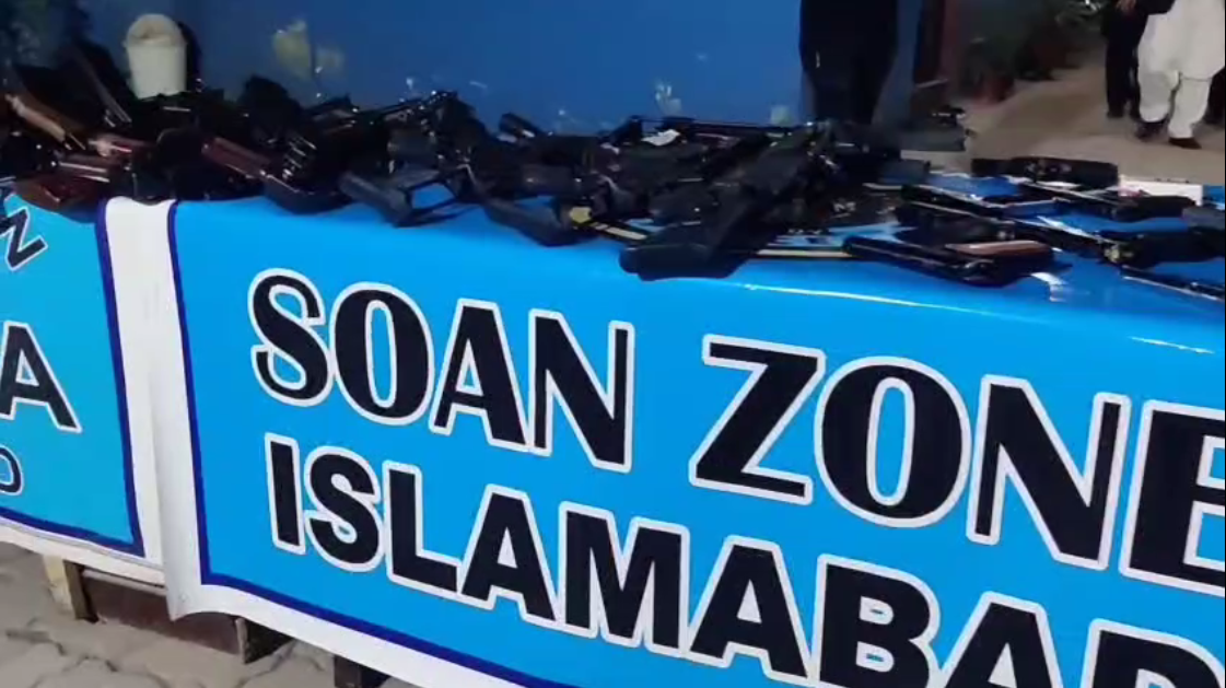 برآمد اسلحہ میں 12 بور، ایم پی فائیو، 44 بور، 223 بور اور 7MM رائفل شامل