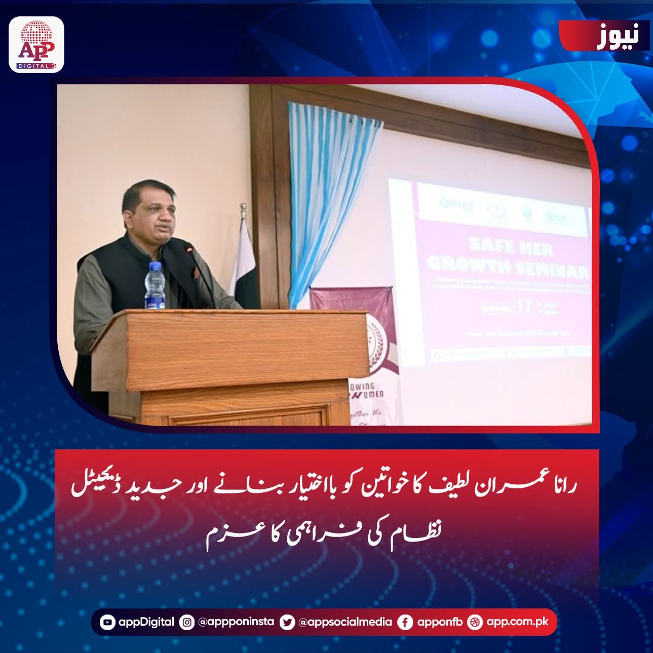 اسلام آباد (اردو ٹائمز) سینئر صحافی، اینکر پنکر پرسن اور چیئرمین پیاس انٹرنیشنل ہیومن رائٹس رانا عمران لطیف نے کہا ہے کہ پاکستانی خواتین کی ترقی اور تحفظ ہماری اولین ترجیح ہے