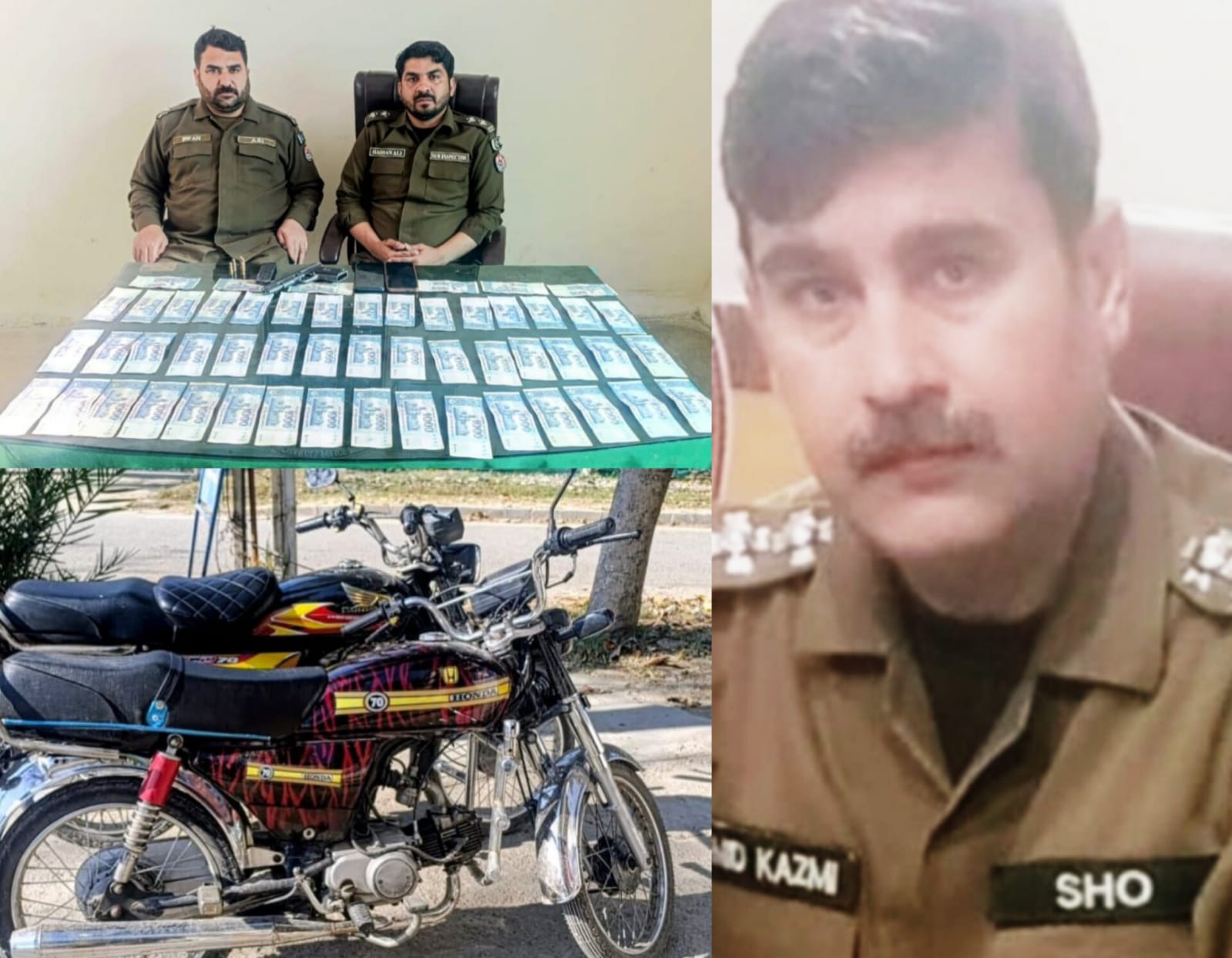 علاقے میں جرائم پیشہ عناصر کیخلاف بلاتفریق کاروائیاں 24/7 جاری رہیں گی (SHO انسپکٹر حامد کاظمی ) تفصیلات کے مطابق ایس پی پوٹھوہار طلحہ ولی کی زیرنگرانی ایس ایچ او تھانہ ٹیکسلا انسپکٹر حامد کاظمی نے جرائم پیشہ عناصر کیخلاف کاروائیوں میں پولیس ٹیم کی سربراهی کرتے ہوئے ڈکیتی موٹرسائیکل چوری کی وارداتوں میں ملوث ،03 رکنی گینگ گرفتار کرلیا پولیس نے زیر حراست گینگ سے چھینی گئی رقم 53 ہزار روپے، 2 مسروقہ موٹر سائیکل اور اسلحہ برآمد کر لیا ۔ ایس پی پوٹھوہار نے ایس ایچ او تھانہ ٹیکسلا پولیس ٹیم کو شاباش دیتے ہوئے کہا کہ گرفتار افراد کو ٹھوس شواہد پر چالان عدالت پیش کیا جائے گا ۔