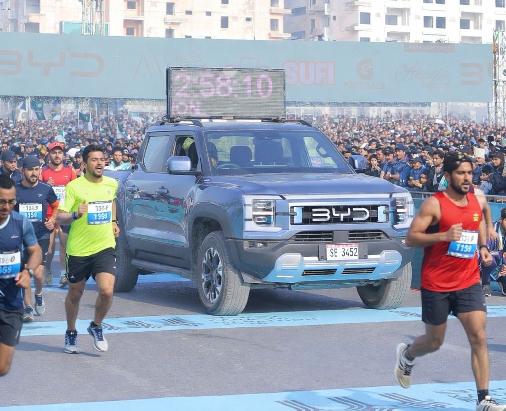 کراچی بی وائی ڈی۔ ایم ایم سی نے کراچی میراتھون کے فاتحین کو لندن میراتھون میں ملک کی نمائندگی کیلئے اسپانسرکرنے کا اعلان کردیا پاکستان میں بی وائی ڈی (بی وائی ڈی) کی آفیشل پارٹنر میگا موٹر کمپنی (ایم ایم سی) نے پاکستان کے نمایاں رنرز کو لندن میراتھن 2026 میں ملک کی نمائندگی کے لیے اسپانسر کرنے کا اعلان کیا ہے۔ اس کا اعلان بی وائی ڈی کراچی میراتھون کی اختتامی تقریب کے موقع پر کیا گیا، جس میں ملک بھر سے 7000سے زائد ایتھلیٹس نے شرکت کی، جبکہ 25 سے زائد ممالک کی نمائندگی کرتے ہوئے 120 سے زائد بین الاقوامی رَنرز نے بھی اس میراتھون میں حصہ لیا۔