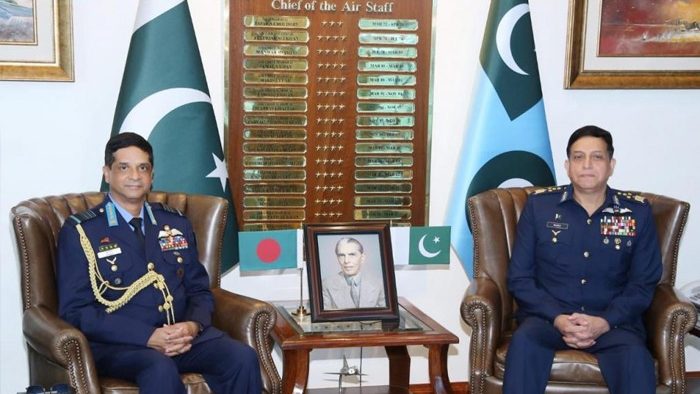 اسلام آباد (اردو ٹائمز) بنگلا دیش کی فضائیہ کے سربراہ ائیر چیف مارشل حسن محمود خان کی زیر قیادت اعلیٰ سطح کے وفد نے پاک فضائیہ کے سربراہ ائیر چیف مارشل ظہیر احمد بابر سدھو سے ملاقات کی
