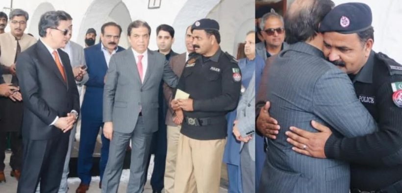 ریلوے اسٹیشن لانڈھی، کراچی میں ریلوے پولیس کراچی ڈویژن کے اہلکار کانسٹیبل راؤ شریف سے ملاقات کی اور مسافر کی 38 لاکھ روپے کی رقم ایمانداری سے واپس کرنے پر اپنے وعدے کے مطابق انہیں اپنی جیب سے ایک لاکھ روپے نقد انعام دیا۔