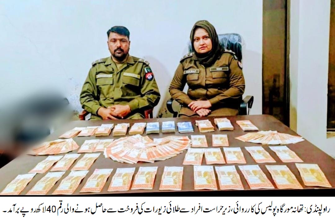 راولپنڈی (اردو ٹائمز) ایس ایچ او تھانہ مورگاہ انسپکٹر گلناز بیگم کی سربراهی میں پولیس ٹیم کی کارروائی