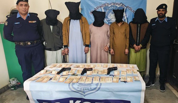 اسلام آباد (اردو ٹائمز) تھانہ کورال پولیس نےشہریوں کو لوٹنے کی وارداتوں میں مطلوب موسیٰ گینگ کے پانچ ارکان سرغنہ سمیت گرفتار، نقدی ،قیمتی گھڑیاں برآمد کر لی گئیں, وارداتوں میں استعمال ہونے والا اسلحہ مع ایمونیشن برآمد کیا۔ ملزمان اسلام آباد پولیس کو راہزنی اور دیگر سنگین جرائم کی وارداتوں میں مطلوب تھے۔ ڈی آئی جی اسلام آباد محمد جواد طارق ,گینگ کے دیگر ساتھیوں کی گرفتاری کے لیے تحرک جاری ہے