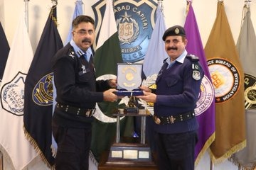 اسلام آباد (اردو ٹائمز) آئی جی سید علی ناصر رضوی کی چیف لاء انسٹرکٹر سب انسپکٹر افتخار حسین سے ملاقات۔آئی جی اسلام آباد نے چیف لاء انسٹرکٹر کی اسلام آباد پولیس کے افسران کی تربیت کے حوالے سے خدمات کو خراج تحسین پیش کیا، انکی کارکردگی کو سراہا اور حوصلہ افزائی کرتے ہوئے تعریفی سرٹیفکیٹ اور نقد انعام دیا