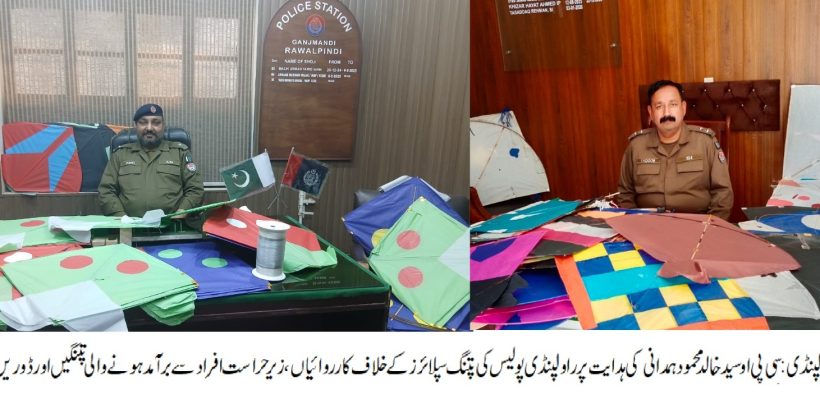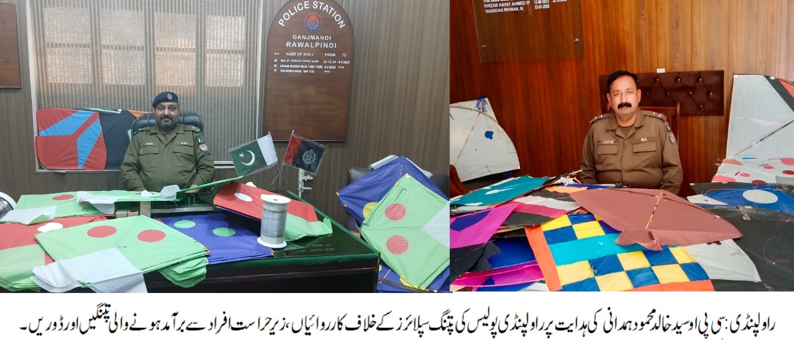 راولپنڈی (اردو ٹائمز) دھمیال پولیس نے سوشل میڈیا پر پتنگ بازی اور اسلحہ کی تشہیر کے حوالے سے ویڈیو سامنے آنے پر کاروائی کرتے ہوئے 02 افراد کو گرفتار کر کے پتنگیں اور اسلحہ برامد کر لیا