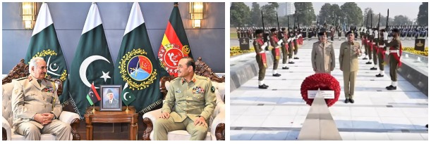 اسلام آباد (اردو ٹائمز)(عباس بیگ مرزا) فیلڈ مارشل عاصم منیر سے کمانڈر اِن چیف لیبین عرب مسلح افواج فیلڈ مارشل خلیفہ ابو القاسم حفتر کی ملاقات ‘ جس میں باہمی دلچسپی بالخصوص متعلقہ خطوں کی سکیورٹی صورتحال پر تبادلہ خیال کیا گیا’ ملاقات میں پیشہ ورانہ تعاون پر پر بھی تبادلہ خیال کیا گیا، پاکستان اور لیبیا کی مسلح افواج کے درمیان مسلسل روابط اور تعاون کی اہمیت پر زور دیا گیا فیلڈ مارشل سید عاصم منیر نے لیبیا کے ساتھ دوطرفہ تعلقات مضبوط بنانے ، لیبیا میں امن، استحکام اور ادارہ جاتی ترقی کے لیے پاکستان کی حمایت کا اعادہ کیا ڈپٹی کمانڈر اِن چیف لیبین عرب مسلح افواج لیفٹیننٹ جنرل صدام خلیفہ حفتر بھی ہمراہ تھے’ نور خان ائیر بیس آمد پر فیلڈ مارشل خلیفہ ابو القاسم حفتر کا استقبال کیا گیا، فیلڈ مارشل سید عاصم منیر نے کمانڈر اِن چیف لیبین عرب مسلح افواج کا استقبال کیا جبکہ معزز مہمان نے شہدا کو خراجِ عقیدت پیش کیا اور جی ایچ کیو میں یادگارِ شہدا پر پھول رکھے