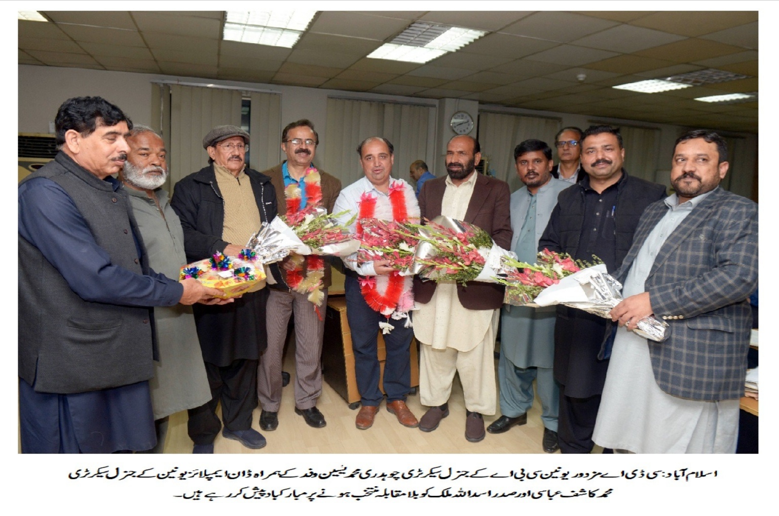 اسلام آباد (اردو ٹائمز) سی ڈی اے مزدور یونین سی بی اے کے جنرل سیکرٹری چوہدری محمد یٰسین نے وفد کے ہمراہ ڈان ایمپلائز یونین کے جنرل سیکرٹری محمد کاشف عباسی اور صدر اسد اللہ ملک کو بلا مقابلہ منتخب ہونے پر دلی مبارکباد پیش کی۔اس موقع پر پاکستان ورکرزفیڈریشن کے جنرل سیکرٹری اسدمحمود،مزدور یونین کے سرپرست اعلیٰ حاجی صابر،ایڈیشنل جنرل سیکرٹری محمد سرفرازملک،نائب صدرمحمد شفیق عباسی،ملک سہیل و دیگر بھی موجود تھے،چوہدری محمد یٰسین نے اس موقع پر نومنتخب عہدیداران کے لیے نیک خواہشات کا اظہار کرتے ہوئے کہا کہ محنت کش طبقے کی نمائندگی ایک بڑی ذمہ داری ہے اور انہیں یقین ہے کہ نئی قیادت کارکنان کے حقوق کے تحفظ، ادارے کی بہتری اور باہمی ہم آہنگی کے فروغ کے لیے مؤثر کردار ادا کرے گی۔ انہوں نے کہا کہ مزدور تنظیموں کے درمیان اتحاد و یگانگت وقت کی اہم ضرورت ہے تاکہ مشترکہ مسائل کے حل کے لیے مضبوط آواز بلند کی جا سکے۔انہوں نے مزید کہا کہ بلا مقابلہ انتخاب اس بات کا ثبوت ہے کہ یونین اراکین کو اپنی قیادت پر مکمل اعتماد حاصل ہے اور یہ اعتماد نومنتخب عہدیداران کے لیے ایک اعزاز بھی ہے اور ذمہ داری بھی جسے وہ دیانتداری اور خلوص نیت سے نبھائیں گے۔اس موقع پر ڈان ایمپلائز یونین کے نومنتخب عہدیداران نے سی ڈی اے مزدور یونین کے جنرل سیکرٹری چوہدری محمد یٰسین اورانکی ٹیم کا شکریہ ادا کرتے ہوئے کہا کہ وہ کارکنان کے مسائل کے حل، ادارے میں مثبت ورکنگ ماحول کے قیام اور پیشہ ورانہ اقدار کے فروغ کے لیے ہر ممکن اقدامات کریں گے۔ انہوں نے اس عزم کا اعادہ کیا کہ یونین کارکنان کے اعتماد کو ہر صورت برقرار رکھا جائے گا اور اجتماعی مفادات کے تحفظ کے لیے بھرپور جدوجہد جاری رکھی جائے گی اور مستقبل میں مزدور کاز کے لیے سی ڈی اے مزدور یونین کے ساتھ مل کر باہمی تعاون کو مزید فروغ دیا جائے گا۔