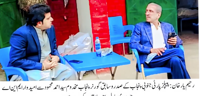 چوہدری عادل باجوہ نے مخدوم سید احمد محمود کی خیریت دریافت کی اور ان کی جلد مکمل صحت یابی کے لیے نیک تمناؤں کا اظہار کیا۔ اس موقع پرحلقہ این اے 172 میں جاری سیاسی سرگرمیوں، تنظیمی معاملات اور آئندہ کی حکمت عملی پر بھی گفتگو ہوئی۔ مخدوم سید احمد محمود نے کہا کہ پاکستان پیپلزپارٹی ملک اور عوام کی ایک محب وطن جماعت ہے جس کی تاریخ شہداء کے خون سے عبارت ہے پیپلزپارٹی نے ہمیشہ ملک و قوم کے مفاد کو ترجیح دی اور جمہوریت کے استحکام کے لیے ہر دور میں لازوال قربانیاں پیش کیں۔ ان کا کہنا تھا کہ صدر مملکت پاکستان آصف علی زرداری کا آئندہ دورہ جمال دین والی ضلع رحیم یارخان اور جنوبی پنجاب کی سیاست کا رخ تبدیل کر دے گا اور اس سے پارٹی کو مزید تقویت ملے گی۔ چوہدری عادل باجوہ نے مخدوم سید احمد محمود کو اپنے حلقہ انتخاب کی سیاسی صورتحال، عوامی رابطہ مہم اور کارکنان کے جذبے سے آگاہ کرتے ہوئے کہاکہ حلقہ این اے 172 میں پیپلزپارٹی مضبوط پوزیشن میں ہے اور کارکنان متحد ہو کر پارٹی پیغام گھر گھر پہنچا رہے ہیں۔ اس موقع پرسابق وفاقی وزیر مخدوم سید مرتضیٰ محمود بھی موجود تھے۔